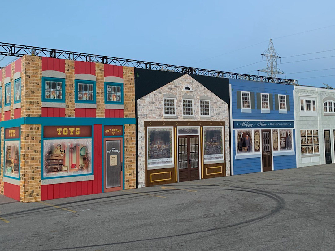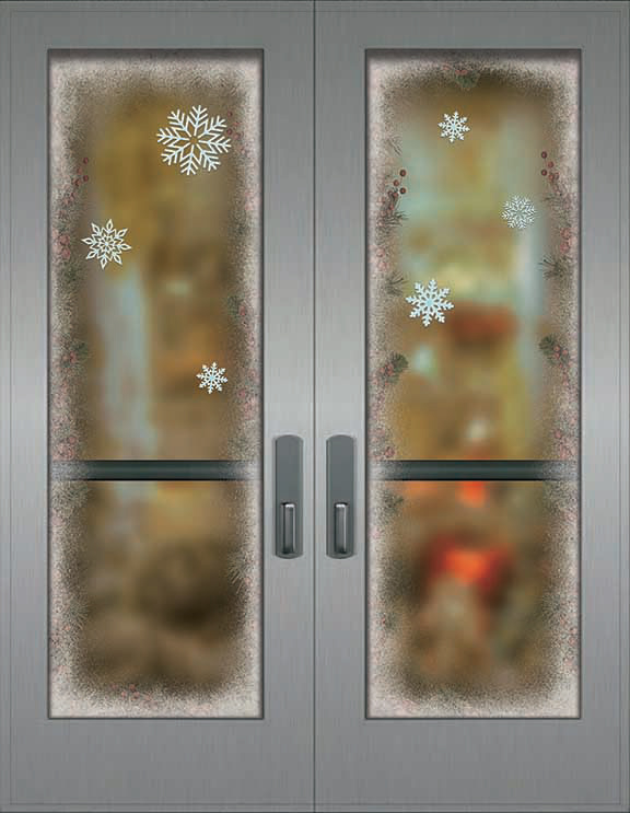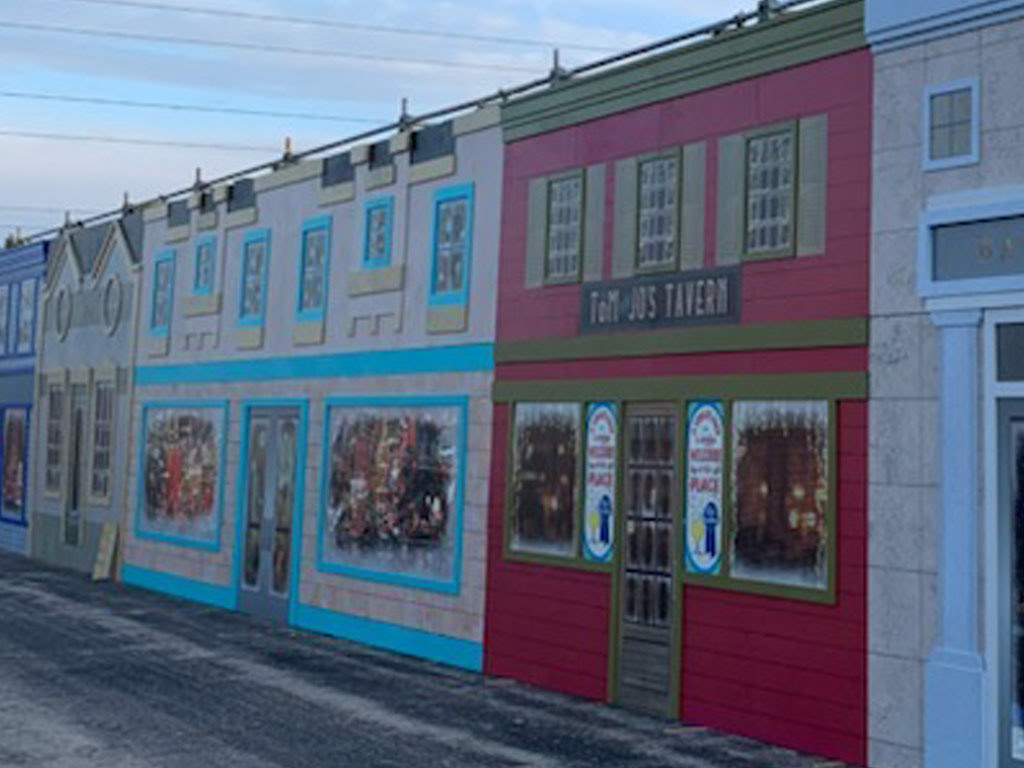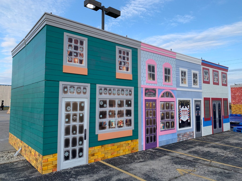 Roughly 200 windows, doors and signs to create photo realistic window graphics to emulate driving down a charming small town main street decorated for the winter holiday season.