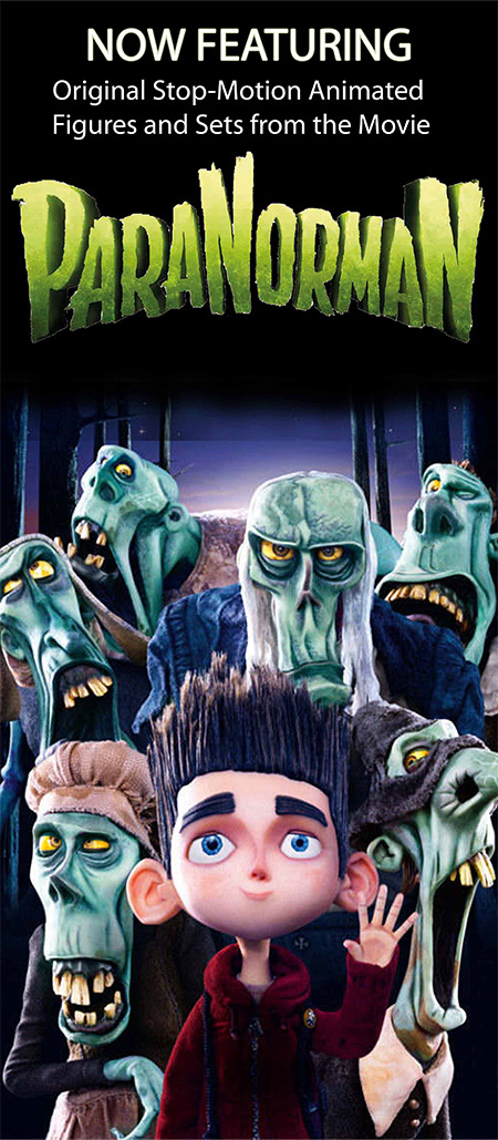 An exhibit that provides guests with a sneak peak to behind the scenes assets and visuals for any upcoming films. Graphic panels are continuously cycled through to promote the next feature.